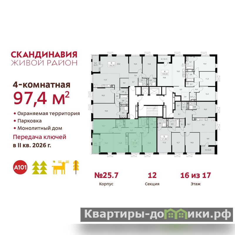 | 12 + 14.7 + 12.4 + 15.8 м2 | |