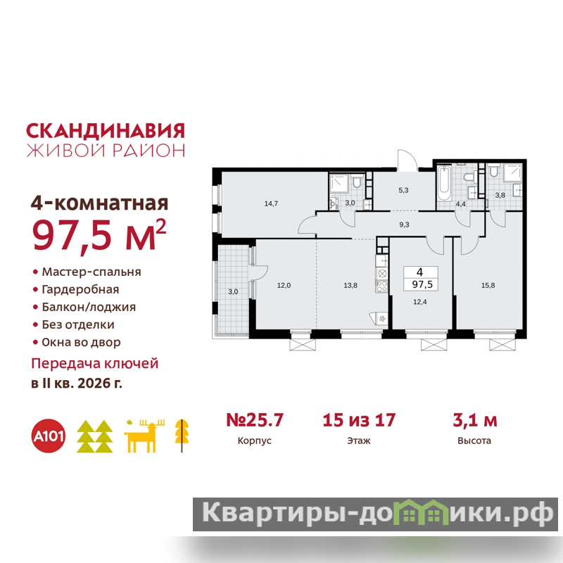 | 12 + 14.7 + 12.4 + 15.8 м2 | |