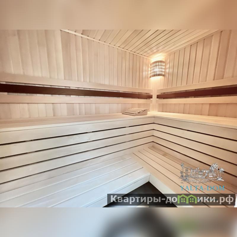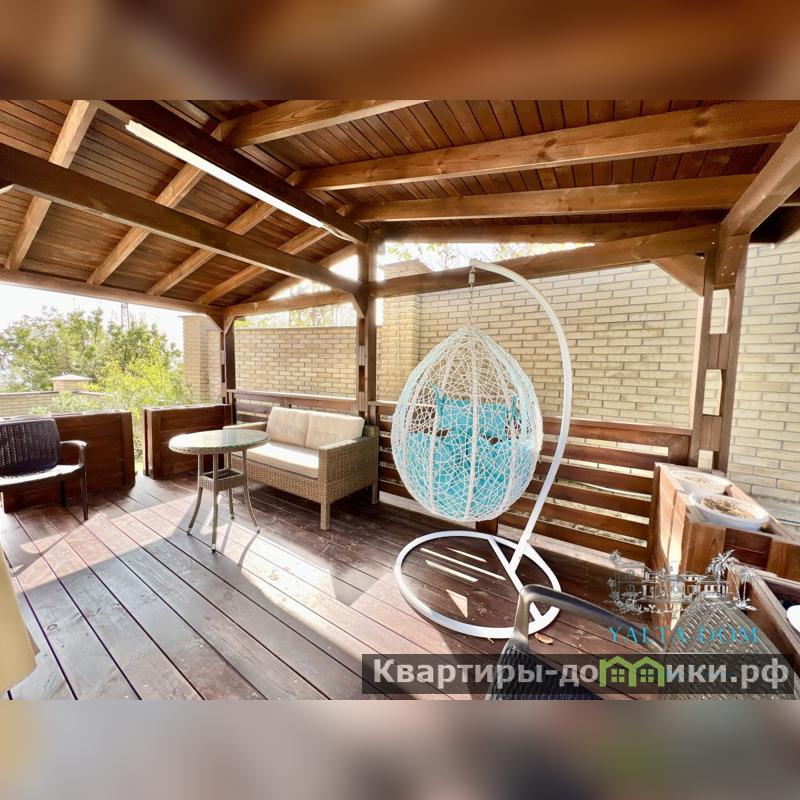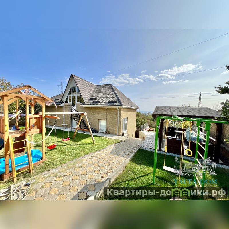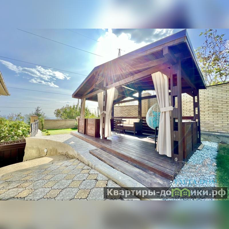 На территории расположен: просторный подогреваемый бассейн с разной глубиной: 3 метра и 1.5 метра, беседка с кроватью, зона барбекю с летней мебелью, ротонда, качели для отдыха с видом на море, летняя мебель в тенистой зоне под виноградником, детская площадка, вторая беседка с летней мебелью, парковочные места под навесом, гараж .