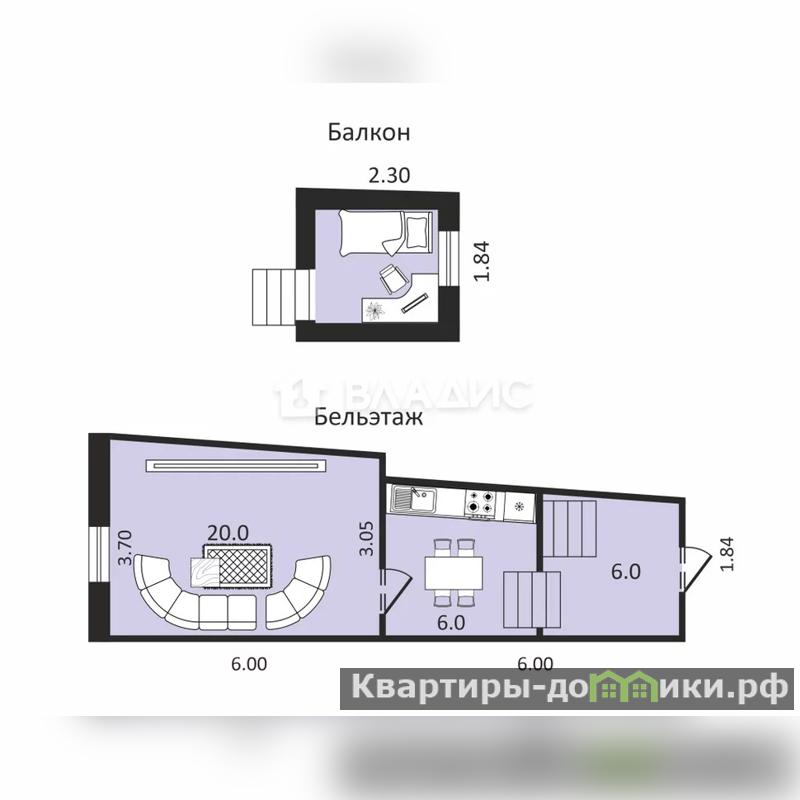 + Две большие комнаты с правильной эргономикой. А так же спальное место надстроено с окном во двор.