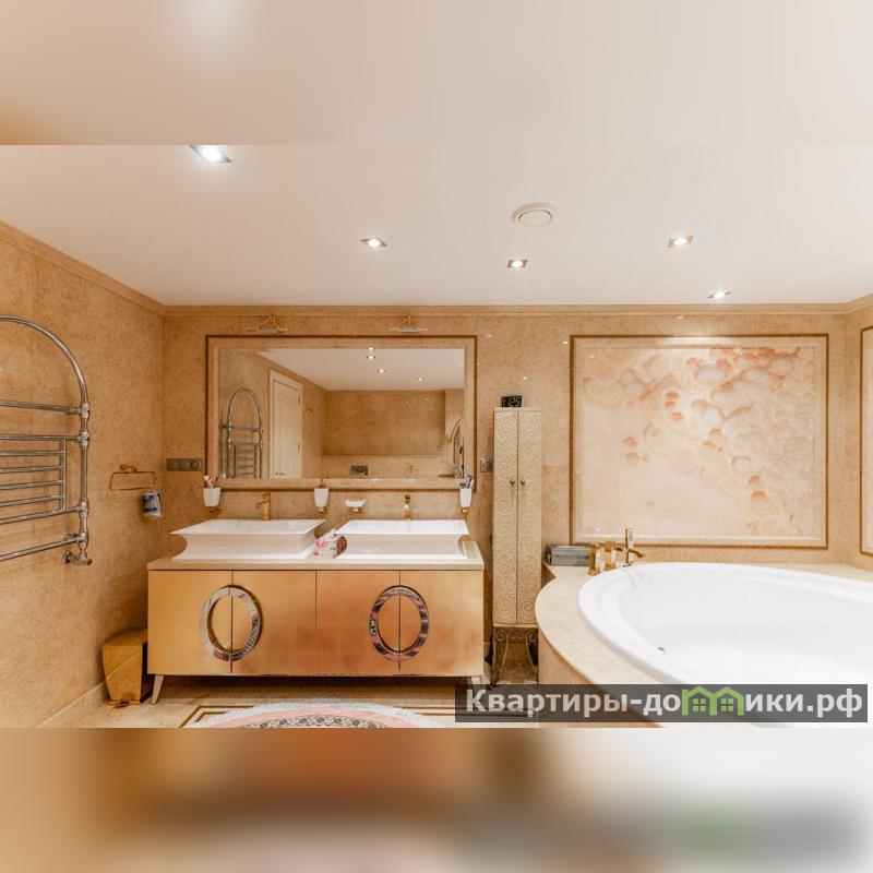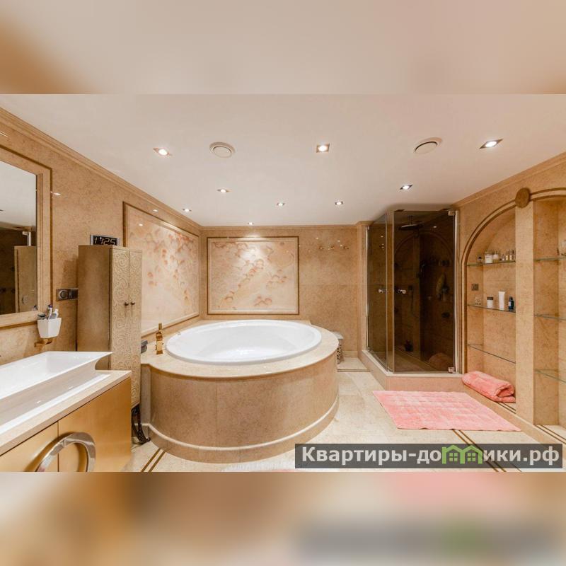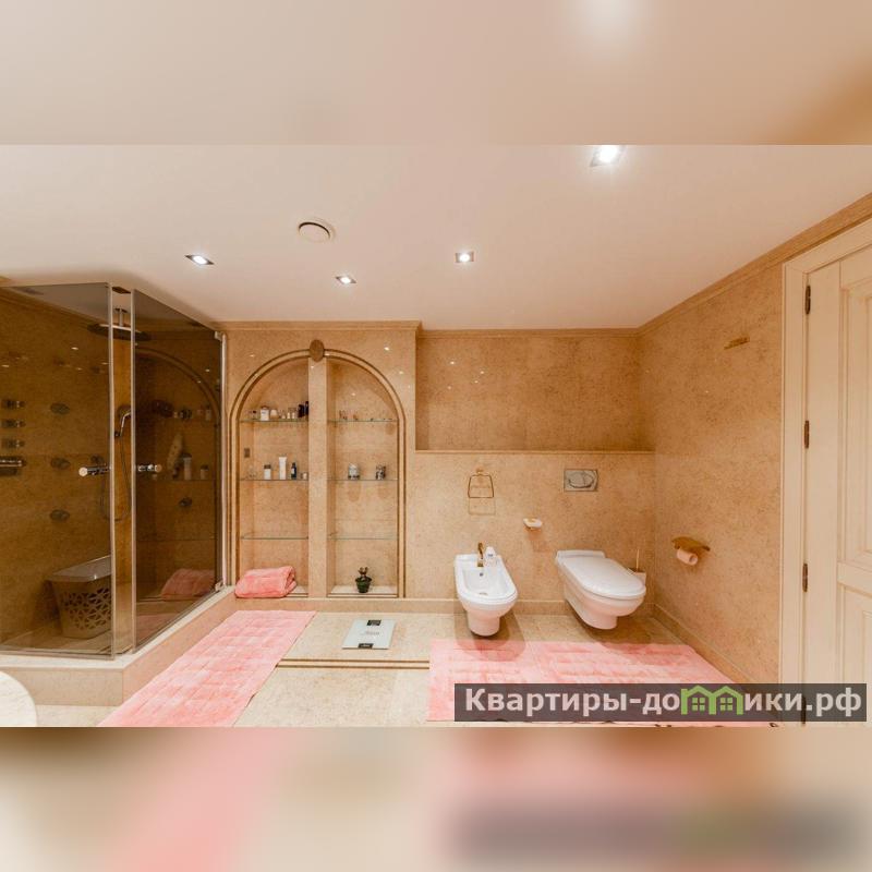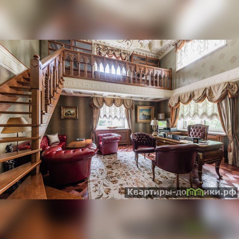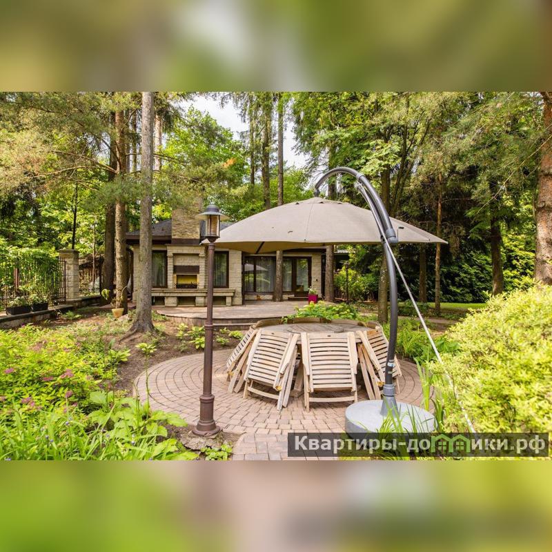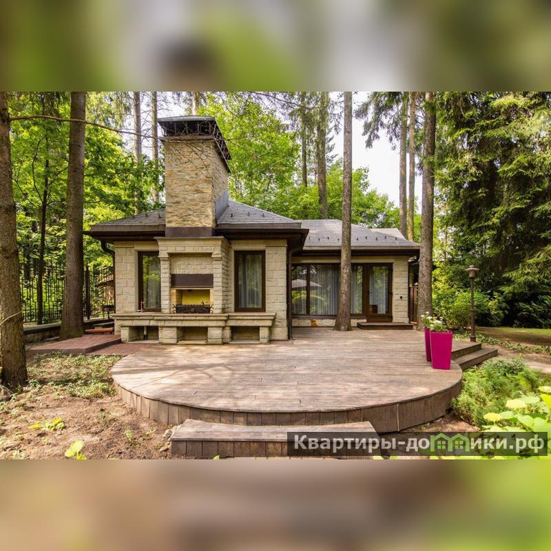 Роскошная загородная резиденция площадью 850 м расположена на просторном ухоженном участке 34 сотки рядом с лесом. Фасад в неоклассическом стилев бежевых тонах украшен рельефом камня и рустами. Фасад, выходящий на участок- с большим эркером и открытым балконом на третьем этаже.