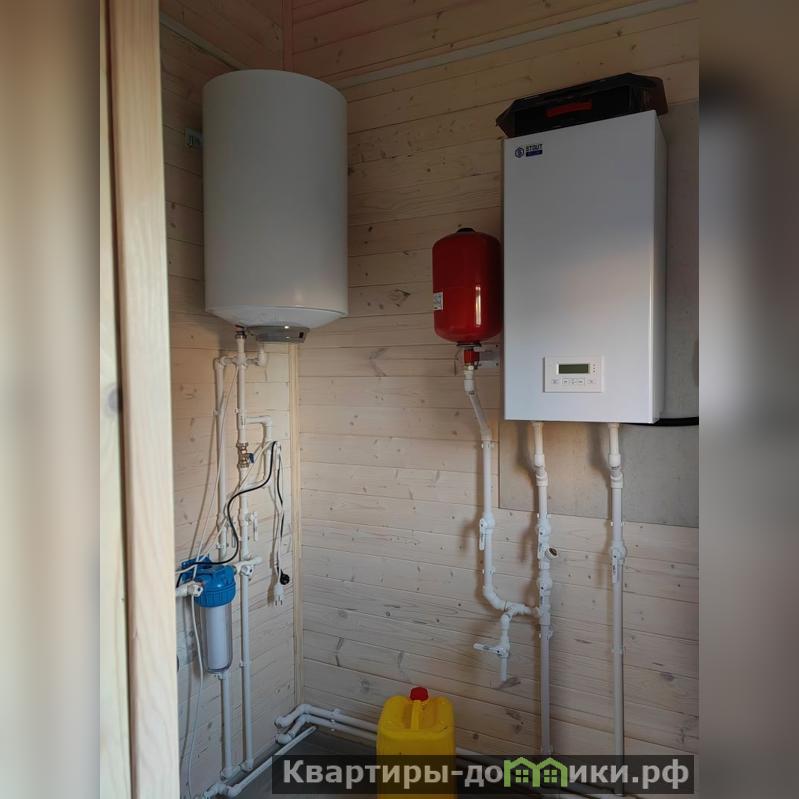 В дом уже заведены все коммуникации: электричество, вода, отопление, канализация. Газ проходит по границе участка.