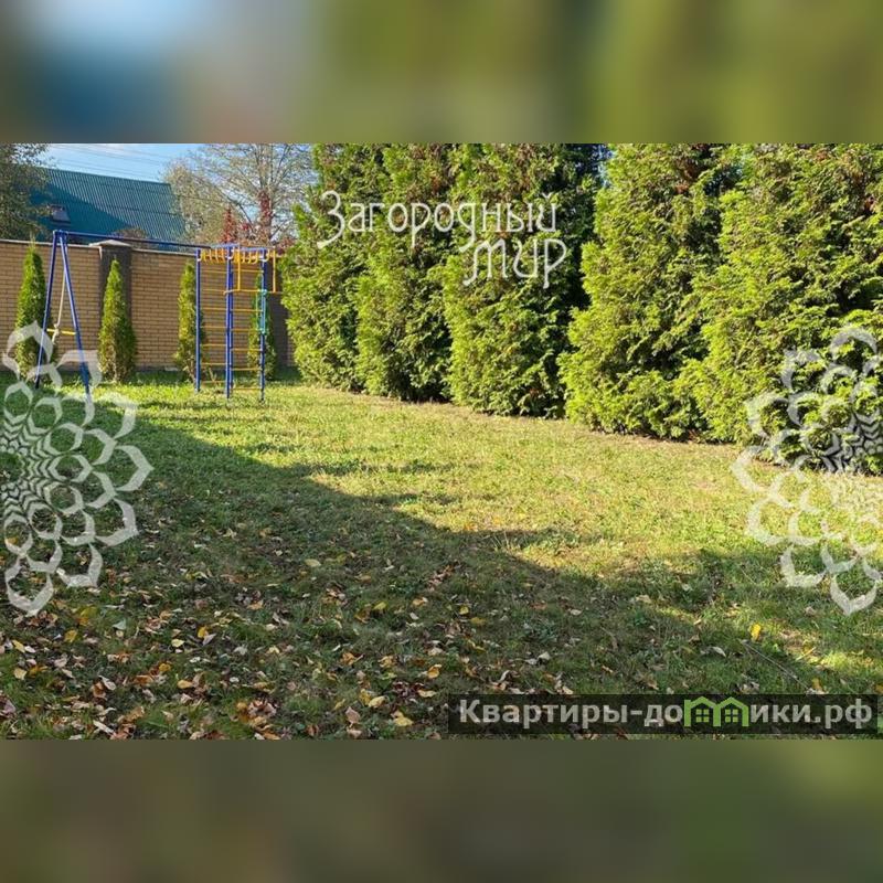 Участок 12 соток, правильной формы, огорожен забором из кирпича по периметру, установлены калитка и автоматические ворота. Организованная площадка на 3 машиноместа и дорожка до крытого крыльца дома из тротуарной плитки. Территория полностью благоустроена, выполнено зонирование живой изгородью: газон, дорожки, туи по периметру, плодовый сад за домом. В жилой комплекс входит гостевой двухэтажный дом 84,2 кв.м: на первом этаже сауна и бассейн с подогревом (помещение отделано натуральным камнем), на втором этаже просторная бильярдная. Отдельная крытая зона барбекю, два небольших хозблока. Все выполнено в едином архитектурном стиле. Организованна детская площадка и спортивная зона.