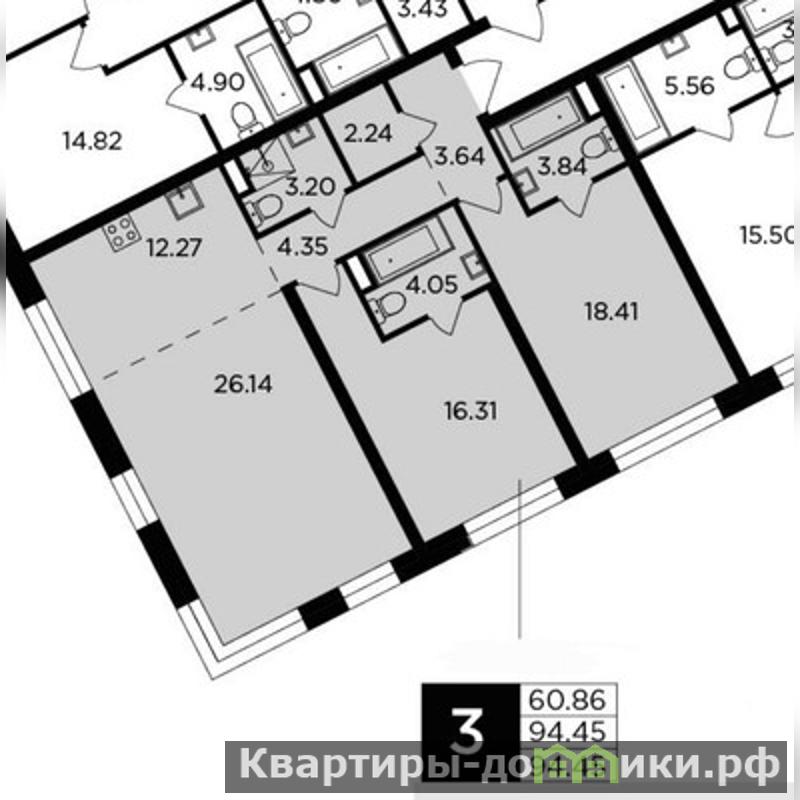 | 26.1 + 16.3 + 18.4 м2 | |