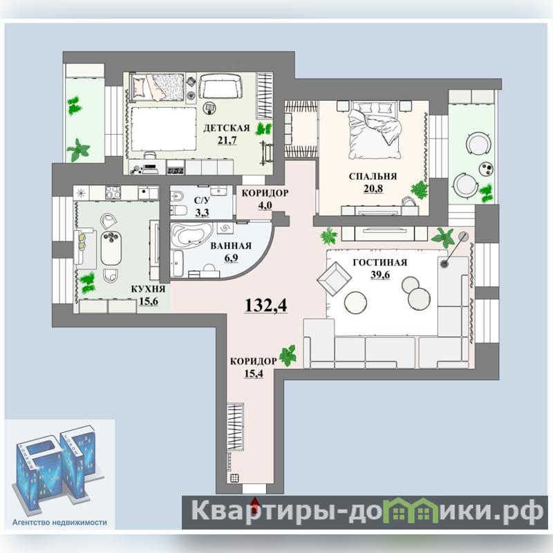 Общая площадь квартиры 132.4 кв.м.