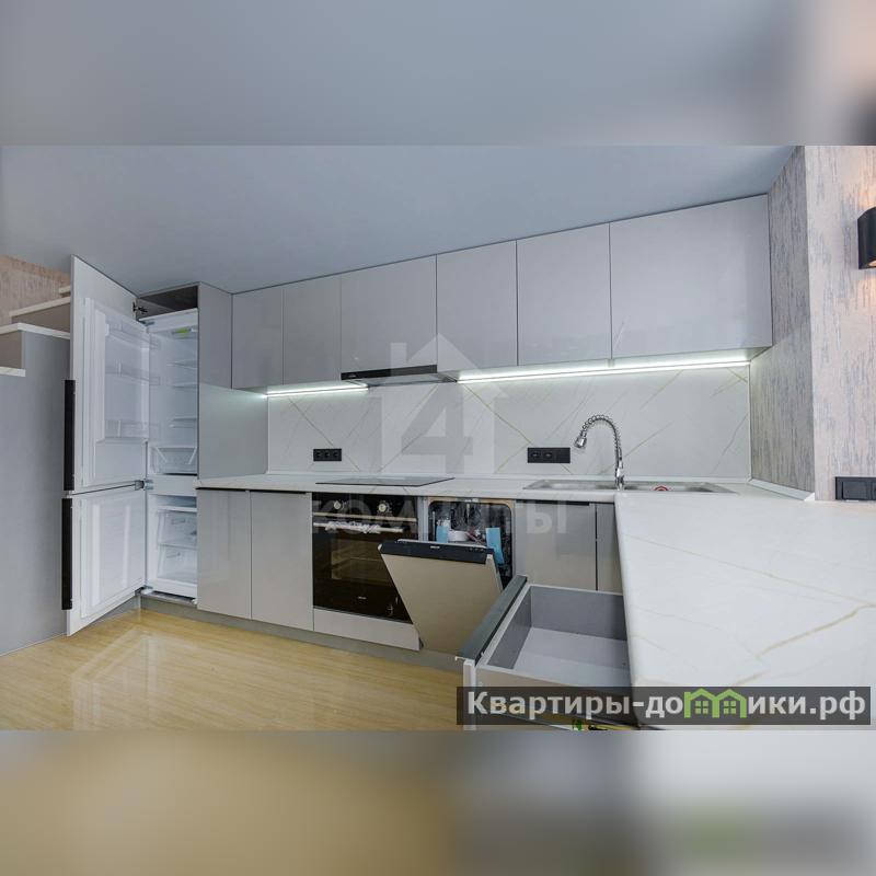 Премиальный кухонный гарнитур со всей необходимой техникой, холодильник, посудомоечная машинка, варочная панель, духовой шкаф, вытяжка.