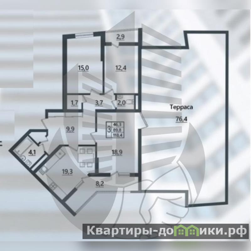 Квартира с террасой 76м2 (21 этаж)