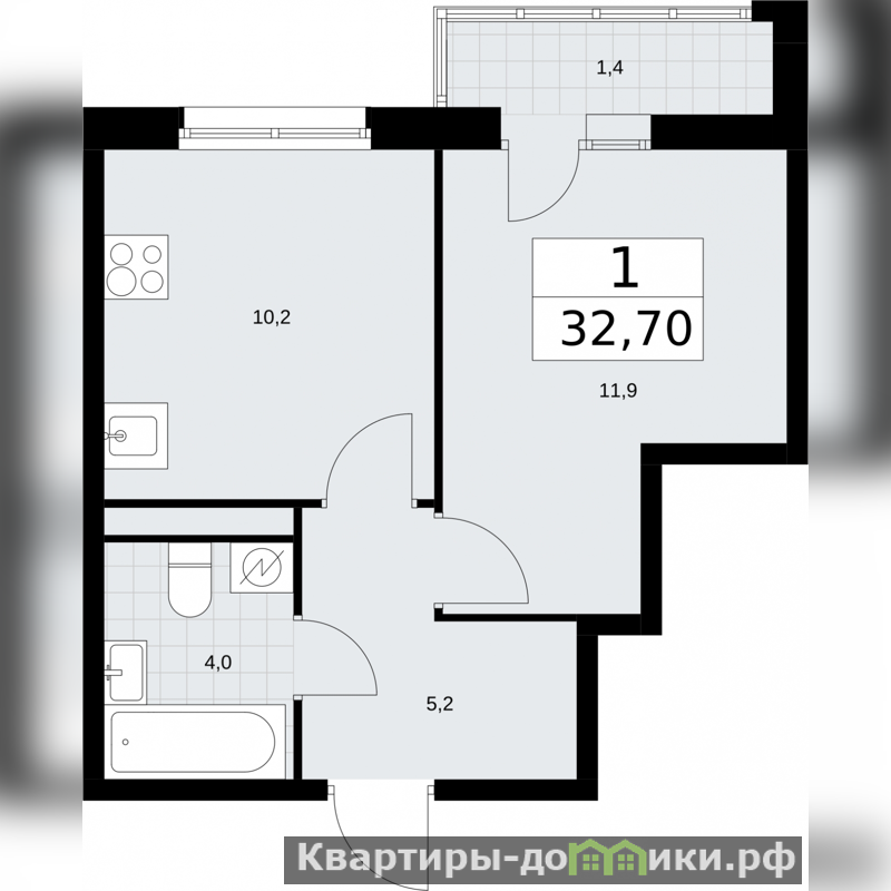 1-комн. квартира-студия с отделкой в ЖК "Родные кварталы" на 7 этаже. Общая площадь: 32.7 кв.м., площадь гостиной 22.1 кв.м., из которых 10.2 кв.м. выделено под кухонную зону. Все окна выходят на одну сторону. В квартире один балкон, один совмещенный санузел. Высота потолков 2.9 м.