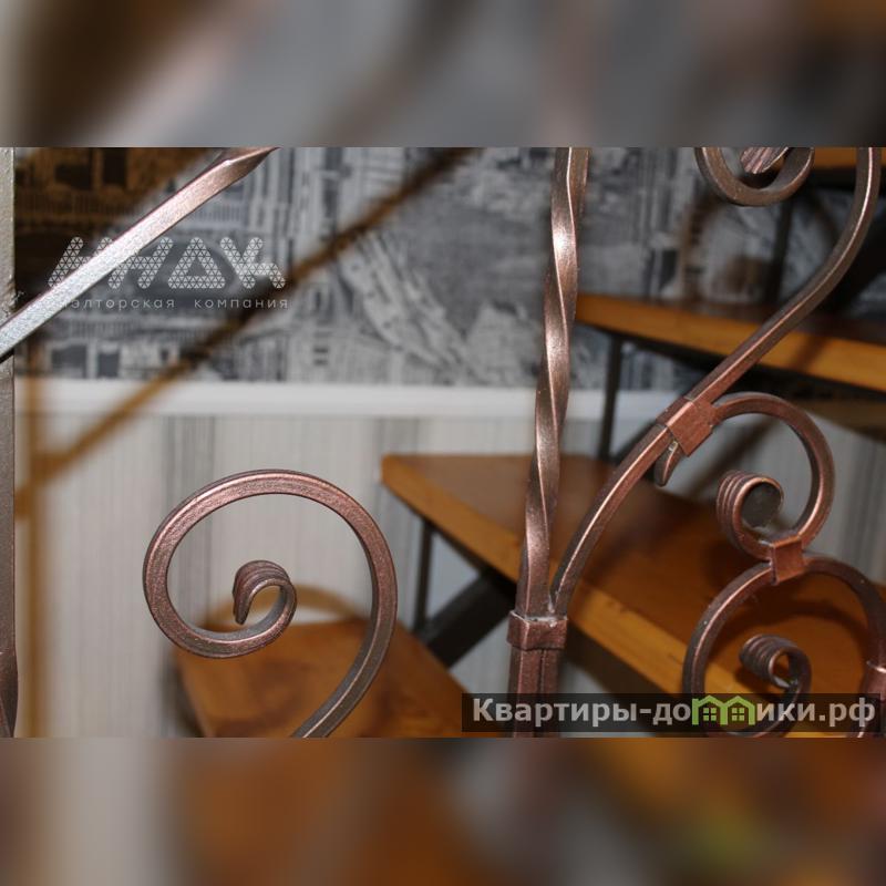 Кованная надежная лестница с ажурными элементами позволяет уверенно подниматься на второй этаж квартиры, гармонично вписывается в интерьер и не занимает много места. Во встроенном кухонном гарнитуре удачно размещен газовый двухконтурный котел с разводкой ко всем батареям и можно регулировать температуру в любое время года. На каждом этаже есть санузел с теплым полом.