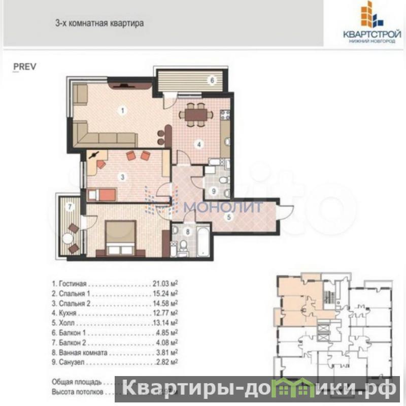 - просторная трехкомнатная квартира с изолированными комнатами общей площадью 89.15 кв.м