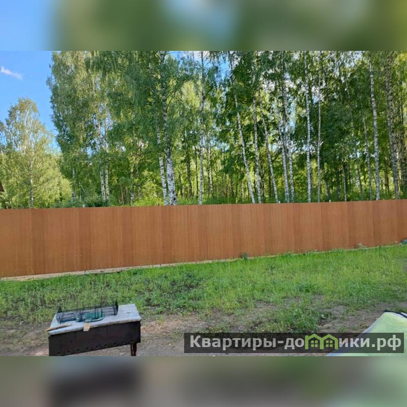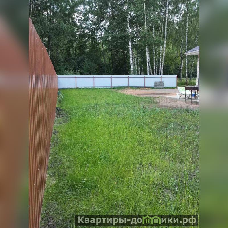 Территория огорожена забором, участок ровный, прямоугольной формы, засеян газонной травой. На территории есть место для парковки, клумбы, мангальная зона под навесом. Установлено видеонаблюдение.