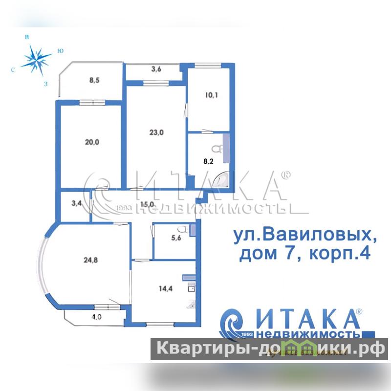 1-87724 Просторная семейная евротрешка площадью 125 кв. м на 13 -м этаже в шаговой доступности от метро Академическая с великолепным видом на город.