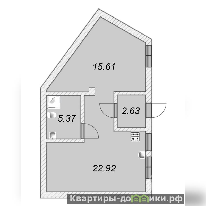 Высота потолков 3.5 м, пространство и естественный свет, на площади 46,6 м? предусмотрены две комнаты: мастер-спальня и кухня, совмещенная с гостиной.
