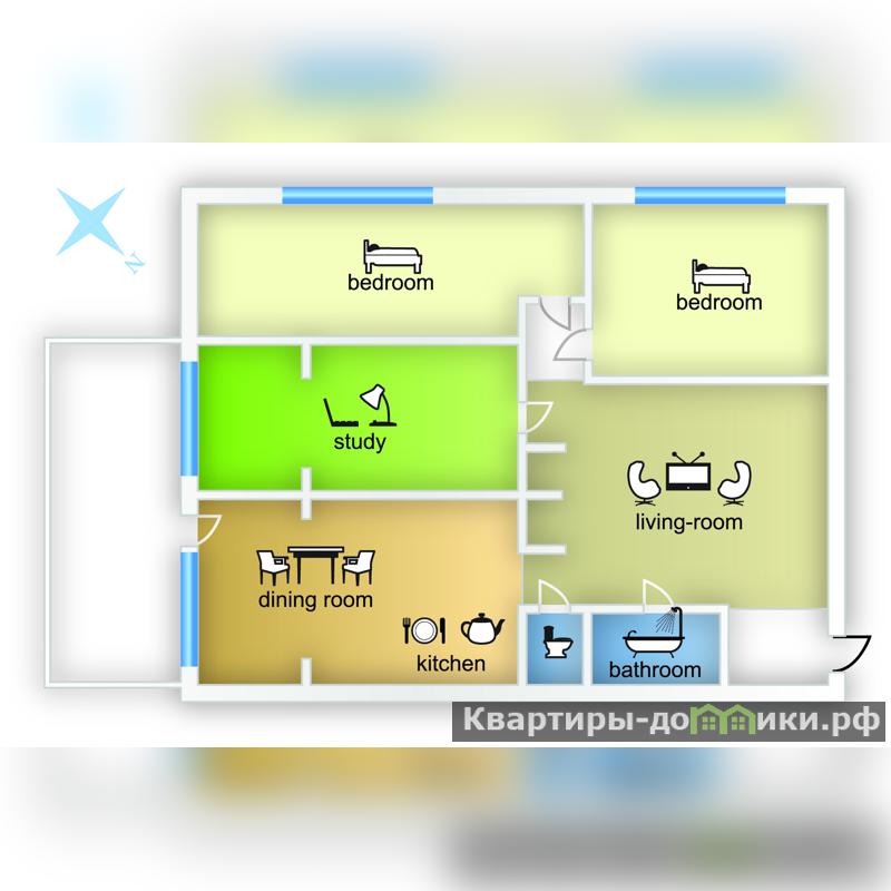 Функциональная планировка: гостиная, 2 полноценных спальни, 1 комната с диваном, кухня, 2 гардеробные комнаты, 4 открытых эркерных балкона, терраса, 2 санузла.