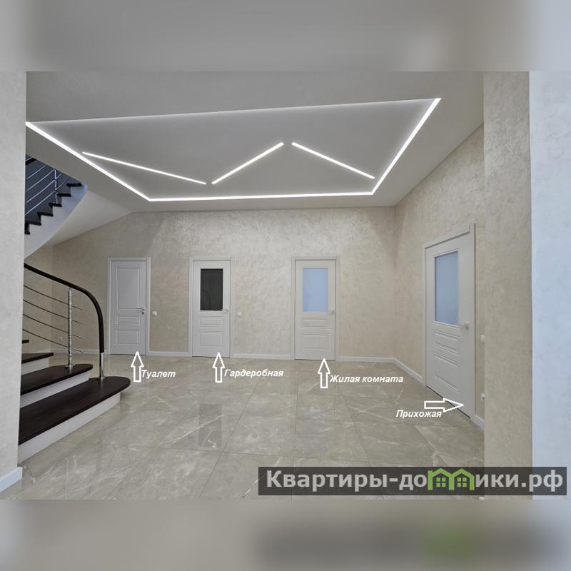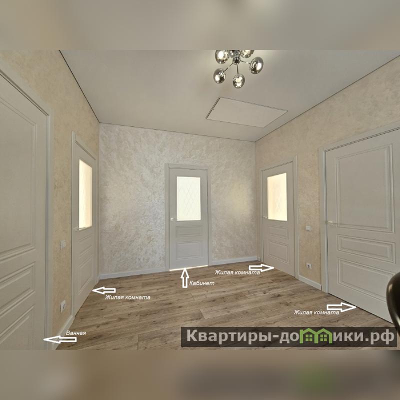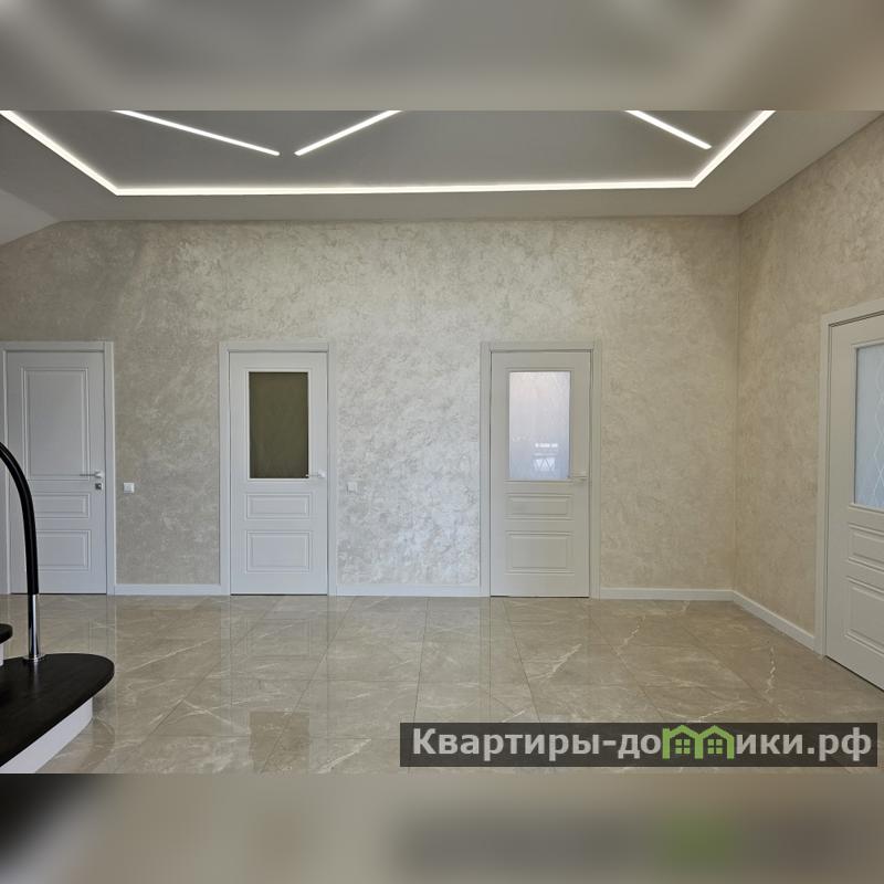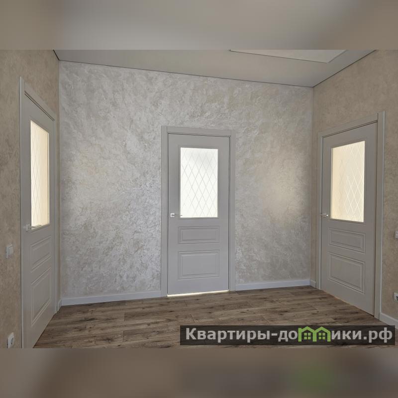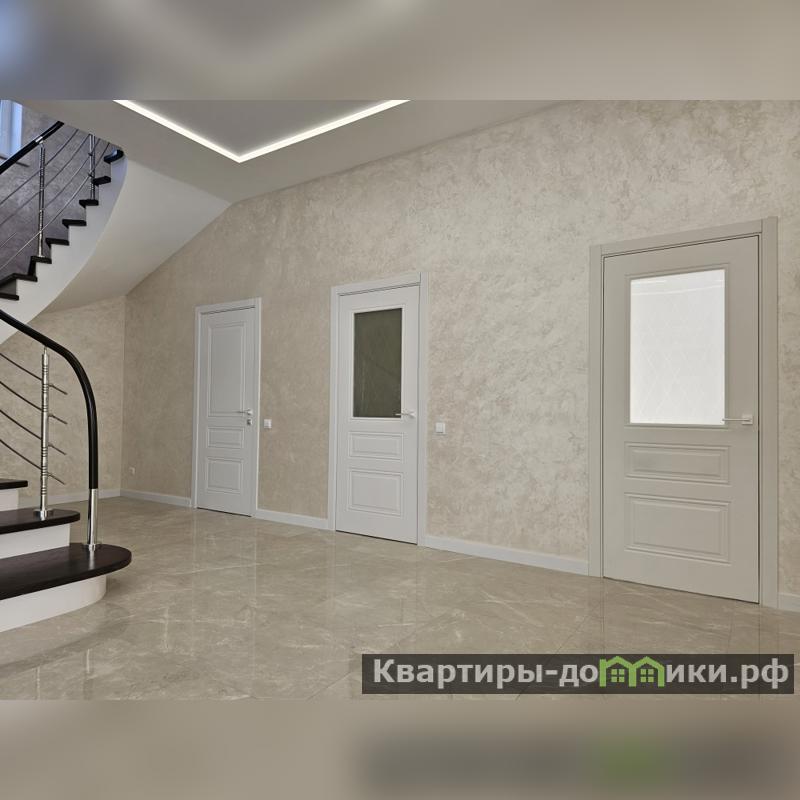 Внутренние стены отштукатурены декоративной штукатуркой «МОКРЫЙ ШЁЛК». Все двери помещений из деревянного массива.