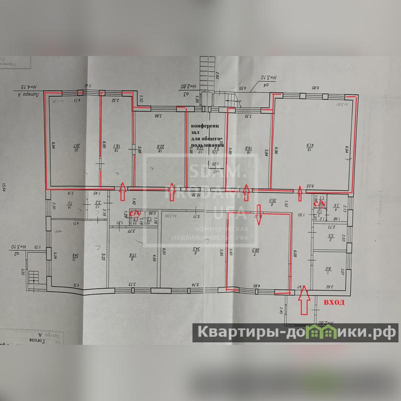 Офис состоит из шести кабинетов, 2 санузла. Также предоставляется конференц зал для пользования без учета аренды.