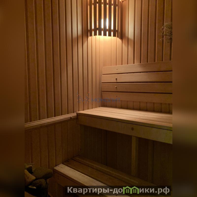 Из каминного зала и комнаты выходы на лоджии. В квартире 2 санузла и сауна.