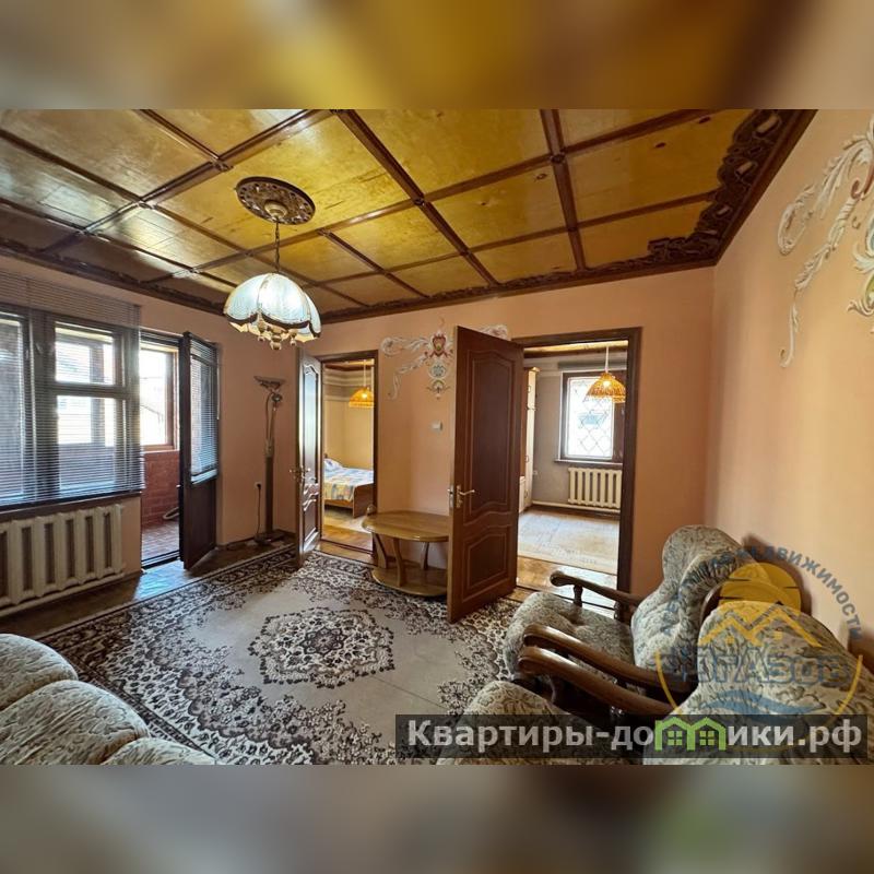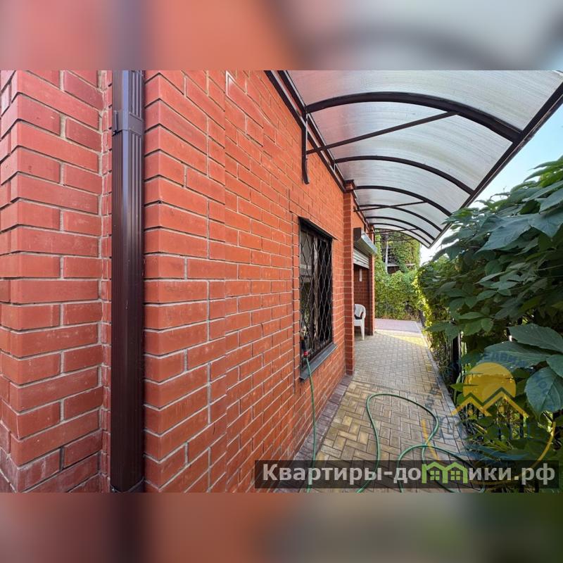 Материал стен-керченский камень, облицовка выполнена из красного кирпича;
