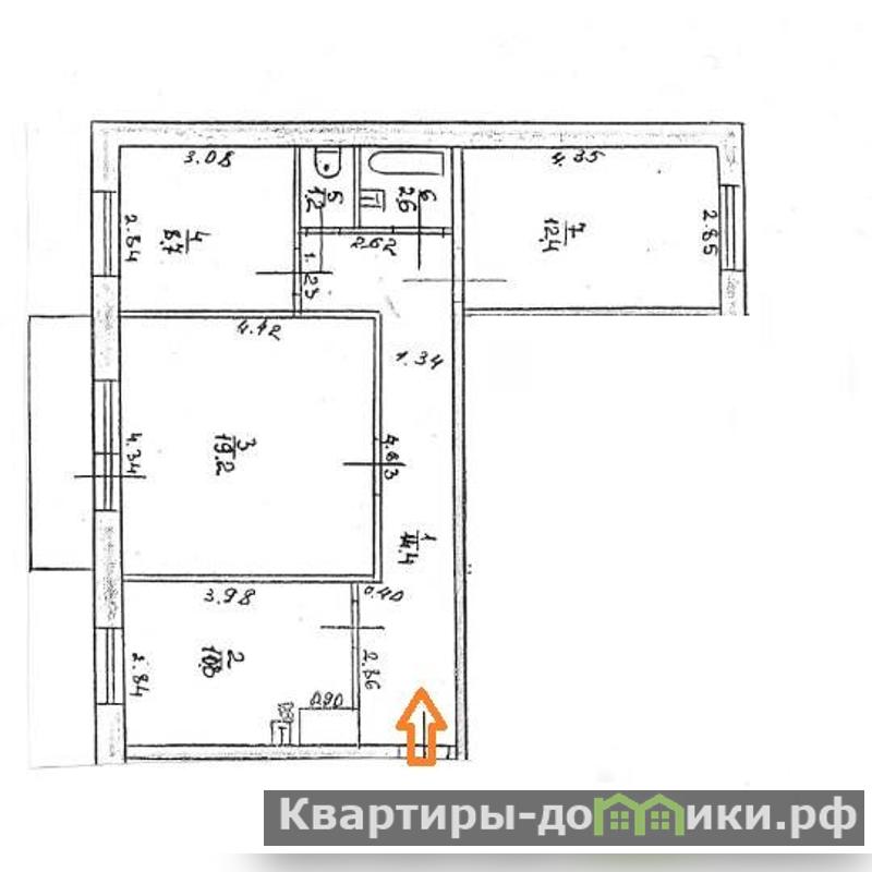 Планировка квартиры: Общая площадь квартиры 69,3 кв.м., Кухня 10,8 кв.м., Комнаты изолированы: 19,2 кв.м, 12,4 кв.м и 8,7 кв.м. Санузел раздельный, большой балкон из большой комнаты.