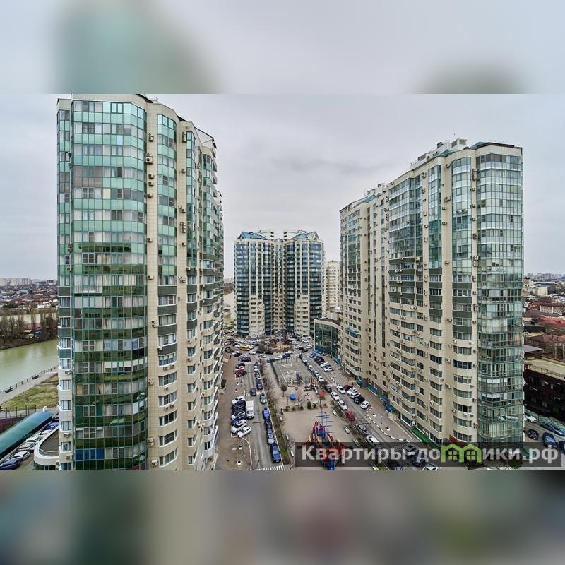 Квартира находится на 14 этаже . Из окон открываются потрясающие виды на реку Кубань, Парк и город. Планировка: общ. S=87 м, 2- спальни и просторная кухня-гостиная, гардеробная, с/у.