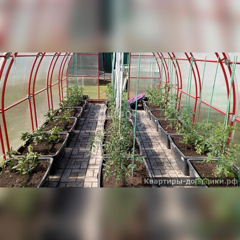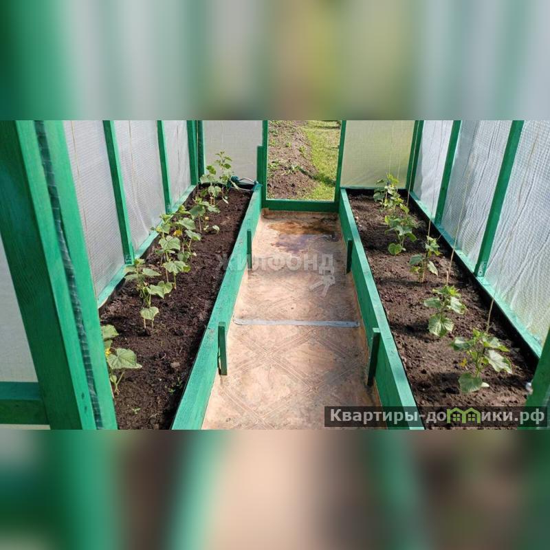 Участок ровный, высокий, прямоугольной формы, на территории большая добротная теплица 6*3, хоз. постройки.