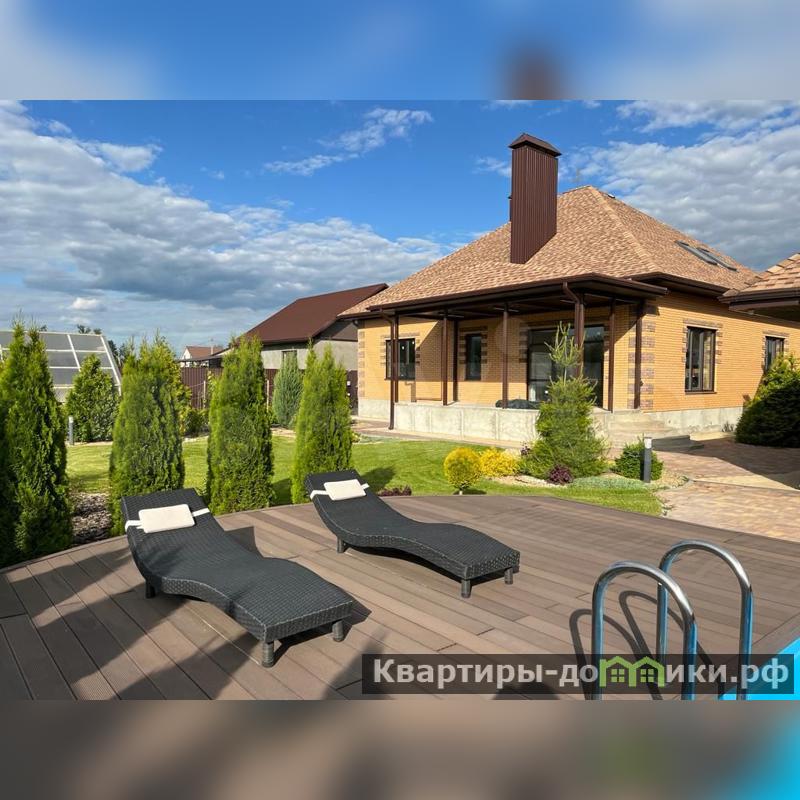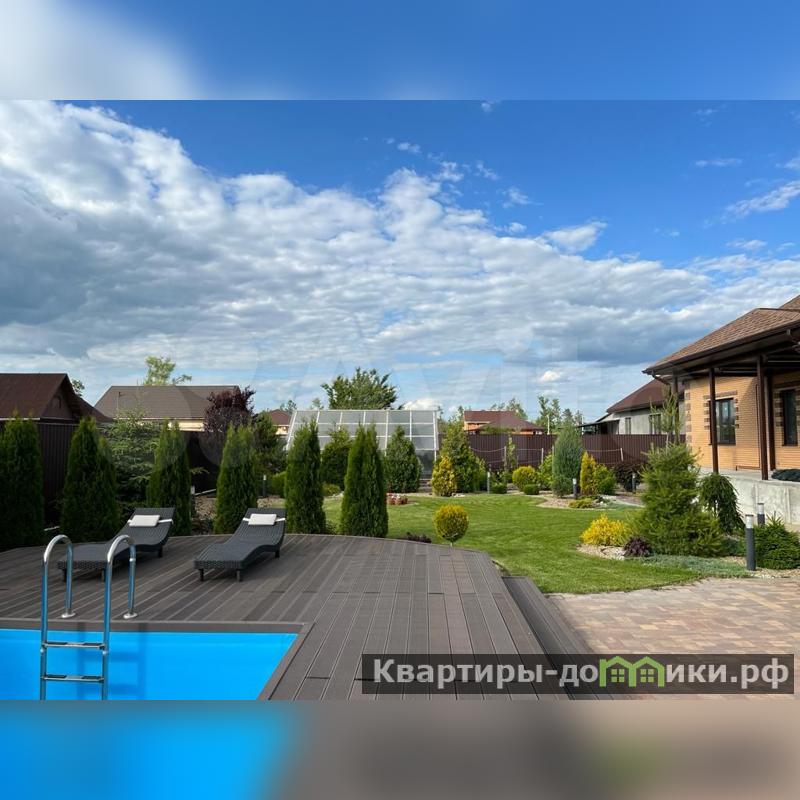 На территории 15 соток разместился дом и полностью готовый к проживанию гостевой дом с действующим бассейном с подогревом и мангальной зоной.