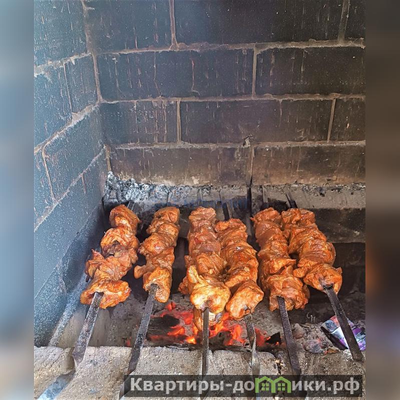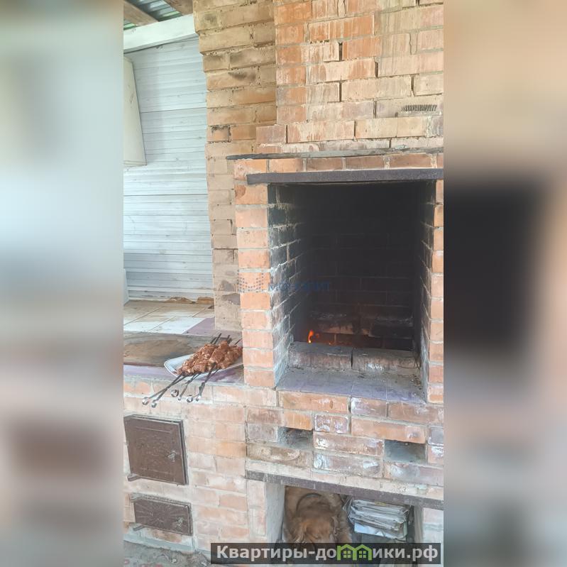 Открытая беседка с обустроенной мангальной зоной ( кирпичный камин с плитой ), вода заведена.
