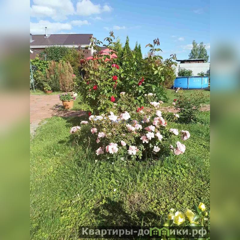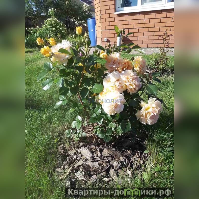 Участок при доме облагорожен: газон , плодовые и декоративные деревья, кустарники, несколько грядок для зелени и огурцов. Красивый ландшафтный дизайн с газоном и цветочными клумбами создает уютную атмосферу вокруг дома. Скрытая разводка труб для полива по всему участку.