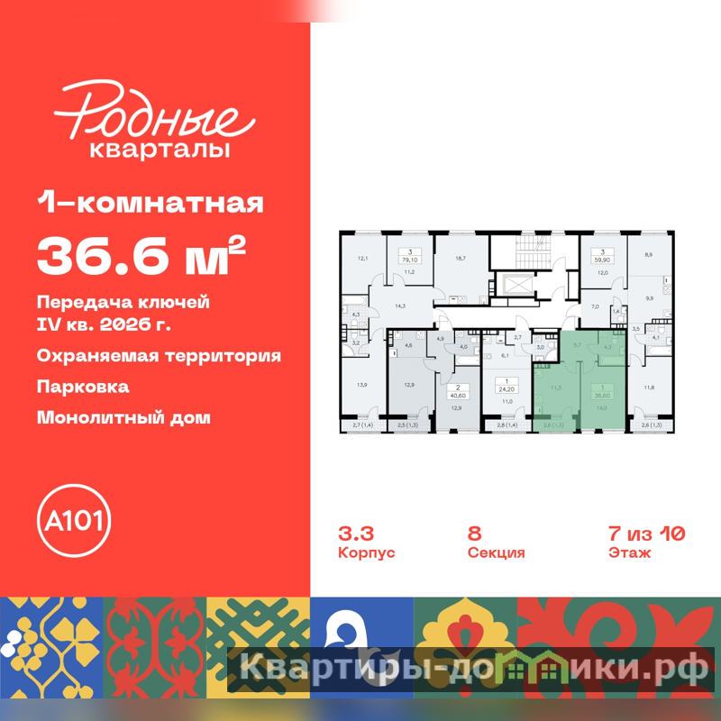 Дом монолитный, черырехподъездный, переменной этажности, от 9 до 10 этажей. Квартира находится во 2-й секции высотой 10 этажей в корпусе 3.3. На этаже 5 квартир. В подъезде 1 грузовой лифт. Начало строительства - 2 квартал 2024 года. Окончание строительства - 4 квартал 2026 года. Оформление сделки по договору долевого участия.