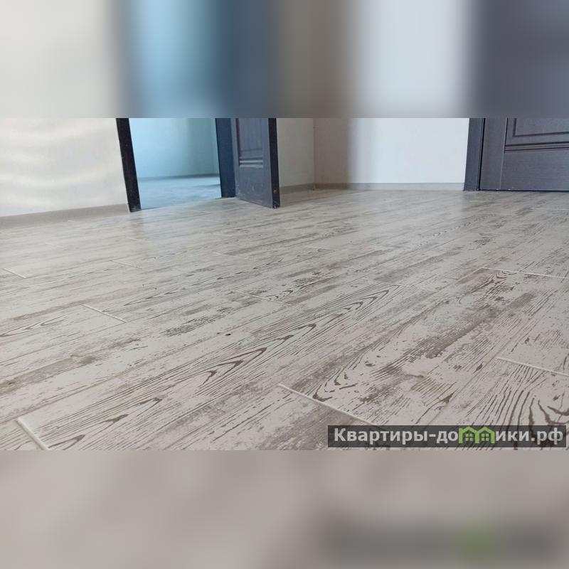 - на полу во всех комнатах постелен ламинат, в остальных помещениях (кухня, прихожая, санузел) положена керамогранитная плитка;