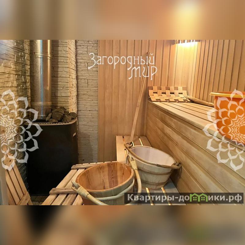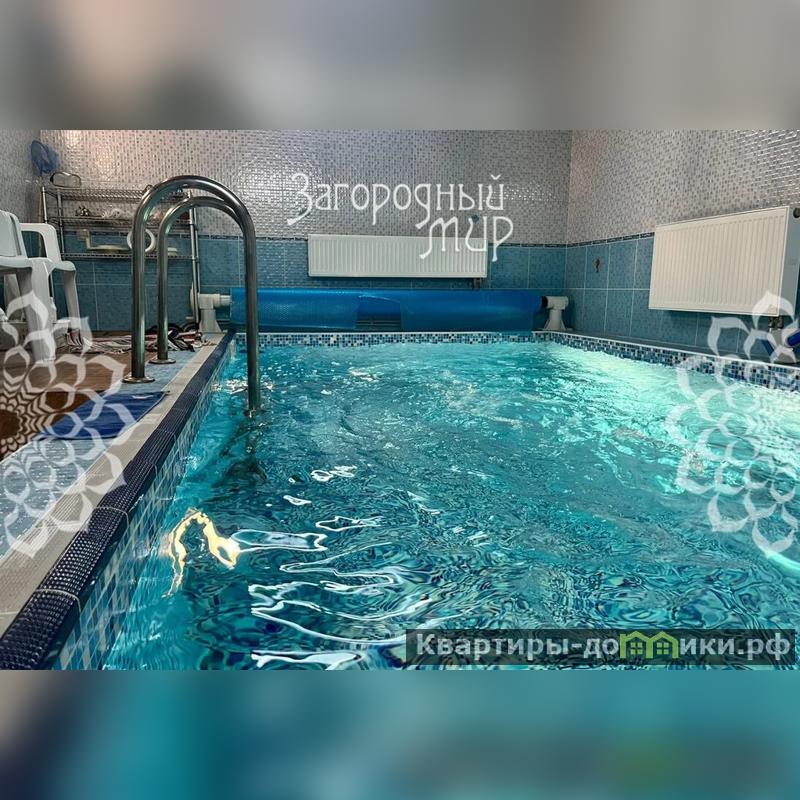 В доме на первом этаже просторная гостиная со вторым светом и с камином, кухня с выходом в зимний сад, спальня, санузел. Также на первом этаже находится бассейн 4,5 на 2,5 метра, с подогревом, оборудованный противотоком, и русская парная. На втором этаже имеется 2 спальни, большой санузел с джакузи, большая гардеробная комната. Также на первом этаже находится застекленная терраса с выходом в сад.