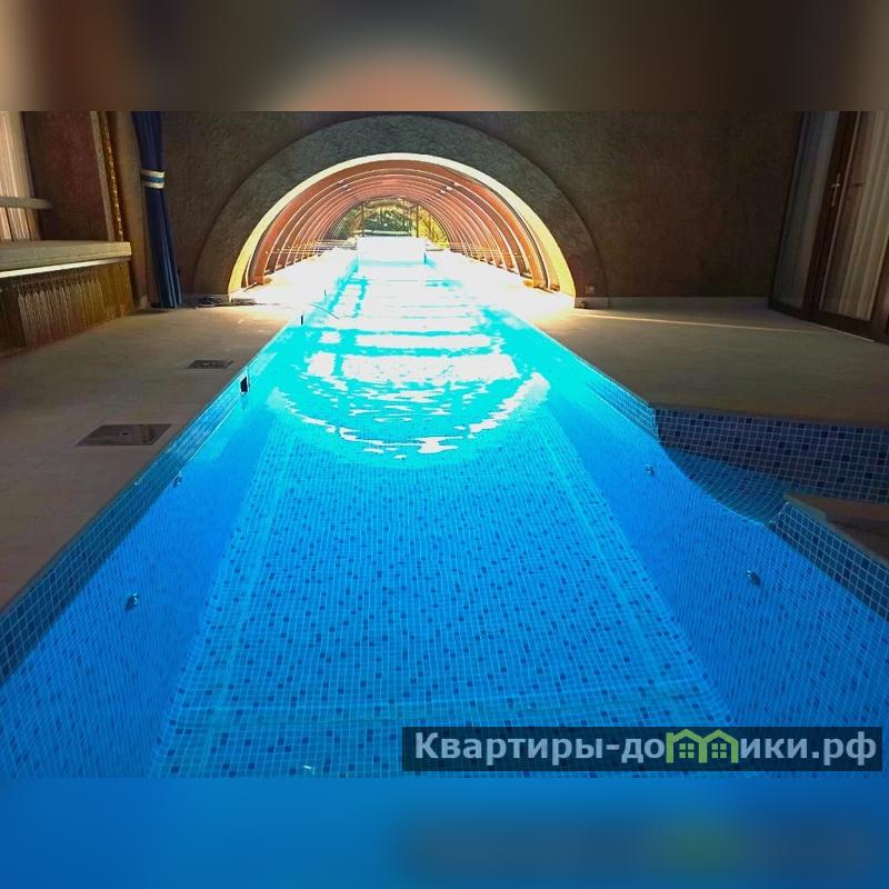 Первый этаж: прихожая, холл, лифт, гостевой с/у, гардеробная, комната, гостиная с камином роялем и вторым светом, столовая, бассейн со сдвигающейся крышей 25 м. гидромассажем и водяной горкой со второго этажа, сауна, санузел, спортивный зал, кладовая комната.