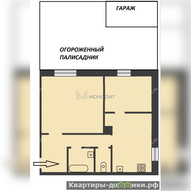 Продаётся 2-комнатная квартира на первом этаже кирпичного двухэтажного дома.
