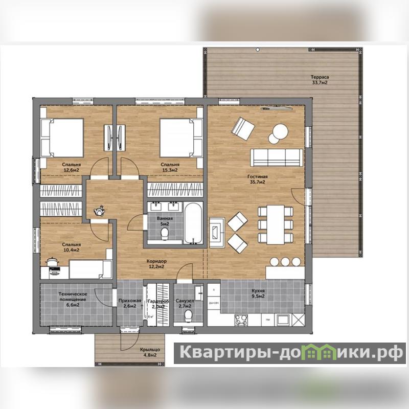 Общая площадь 164 кв.м. Продуманная планировка, плавно-перетекающее пространство - от входной зоны в зону кухни-гостиной с панорамными окнами в одну сторону и зону спален в другую сторону (смотри планировку). Два санузла, полностью оборудованные, есть хозяйственная комната. Кухня-гостиная 46 кв.м., спальни 16 кв.м., 13 кв.м. ,11 кв.м. Установлена кухня фирмы Дуэт, встроенная бытовая техника.
