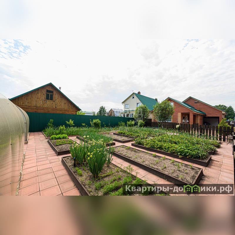 По периметру расположены посадки: вишни очень урожайные, яблоня, привитая 4 сортами яблок, малина, клубника и туи .