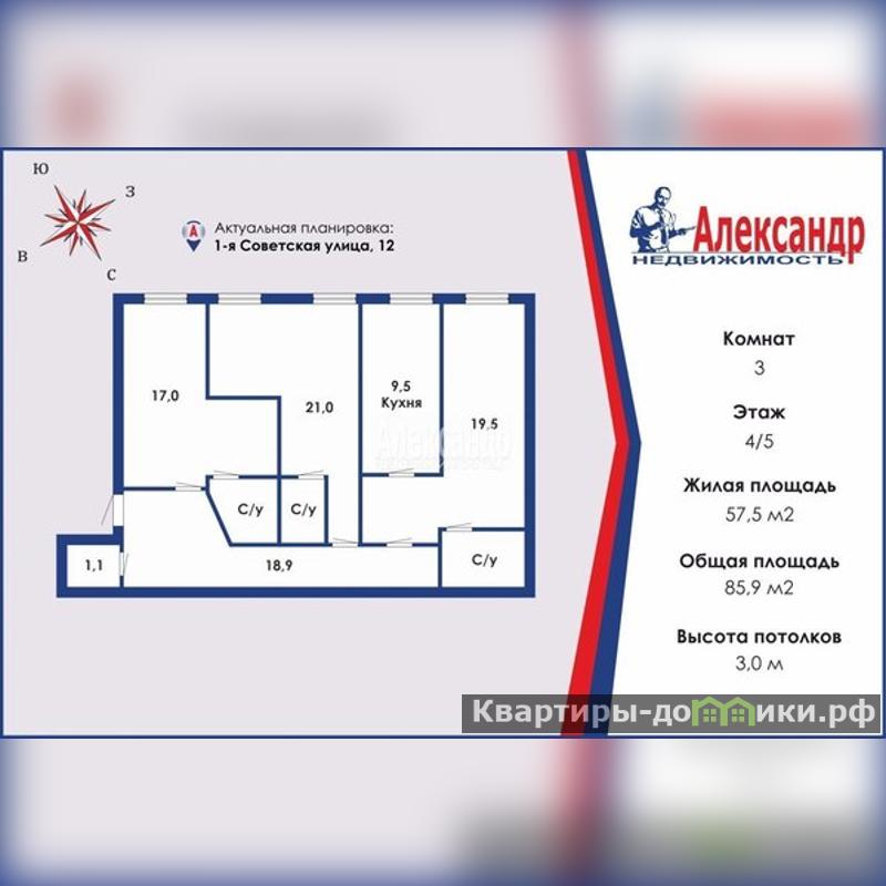 1694745 Интересное предложение !<br/>Продается трехкомнатная квартира в самом популярном месте исторического центра Санкт-Петербурга , `пл. Восстания`. Квартира в красивом доме 1899 года постройки, в архитектурном стиле Эклектика с продуманной эргономичной планировкой, как для жизни, так и для получения дохода и инвестиций.<br/><br/>В квартире сделан капитальный ремонт, заменены все коммуникации, разумно расположены розетки и выключатели,<br/>продумана каждая деталь, что позволило создать эргономичный интерьер и увеличить жилое пространство(69кв.м жилая площадь) избавиться от темных коридоров и грамотно выделить зоны хранения.<br/>Две студии 17кв.м и 21кв.м, евро-двушка 29кв.м, в каждой встроенная кухня, сан/узел, мебель и техника. Окна в тихий двор.<br/>Вход с тихой прогулочной улицы под арку, в чистый отремонтированный двор с б/п парковкой.<br/>В микрорайоне большое количество хороших школ ( 207 с углубленным изучением английского языка), гимназий (Павловская и 171) , лицеев(N214 и 114), другие детские учреждения.<br/>В пешей доступности музеи, театры, исторически значимые места, кафе, рестораны, магазины, ТЦ .<br/>Удобная транспортная развязка: 3 минуты пешком до стации метро `Площадь Восстания` , Московский вокзал, Невский проспект.<br/>Один взрослый собственник, никто не прописан. Подходит под ипотеку, при необходимости поможем с одобрением с лучшей процентной ставкой. Прямая продажа.<br/>Квартира будет прекрасным выбором для проживания семьи или для бизнес-вложения под сдачу.<br/>