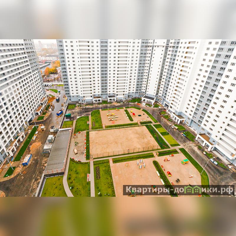Вид из окон в благоустроенные дворы/детские площадки жилого комплекса.