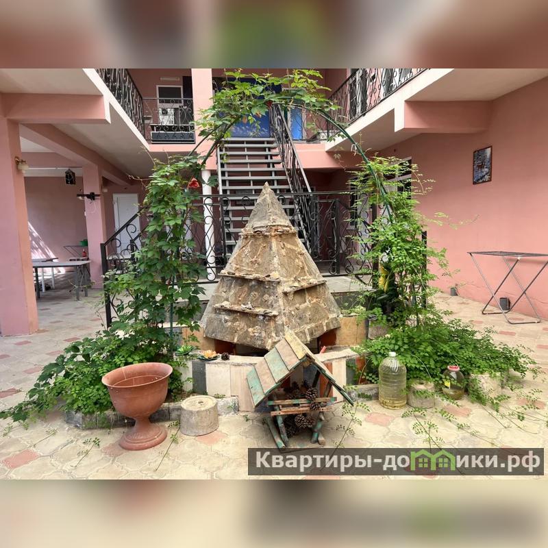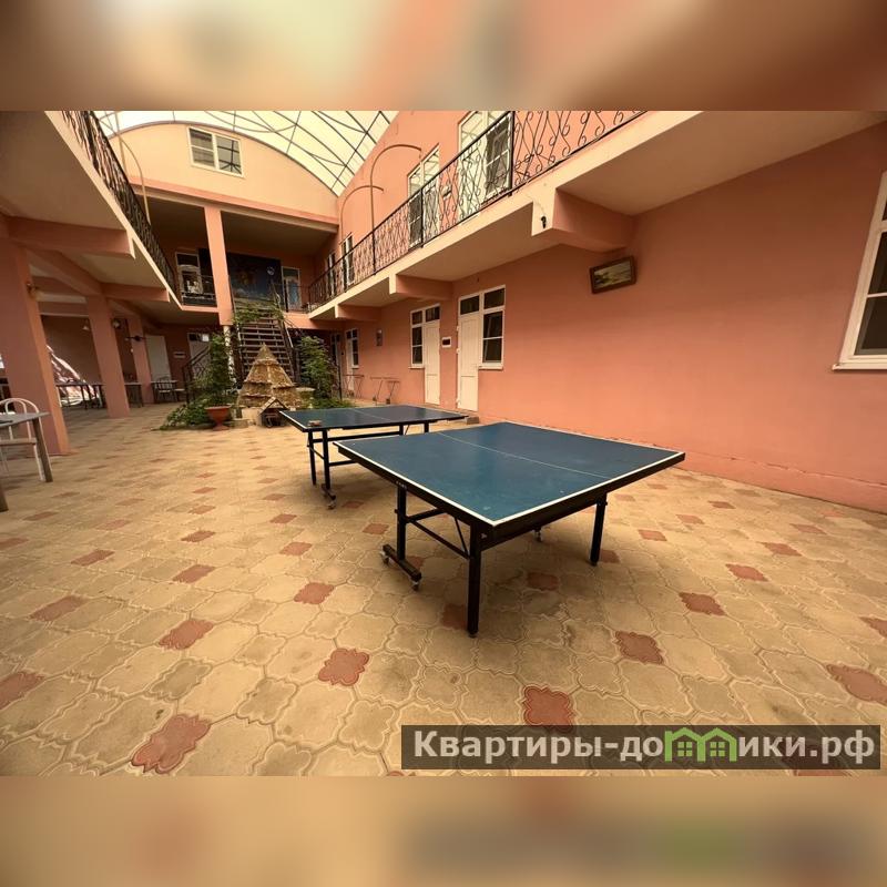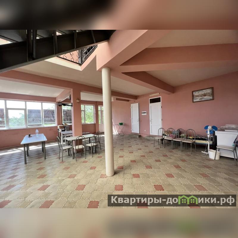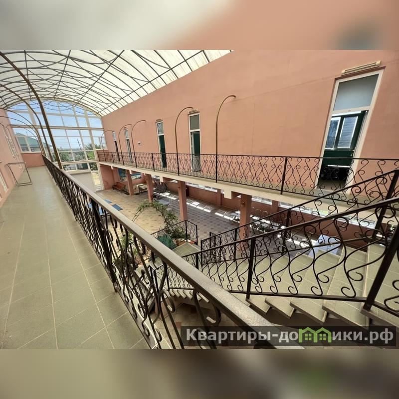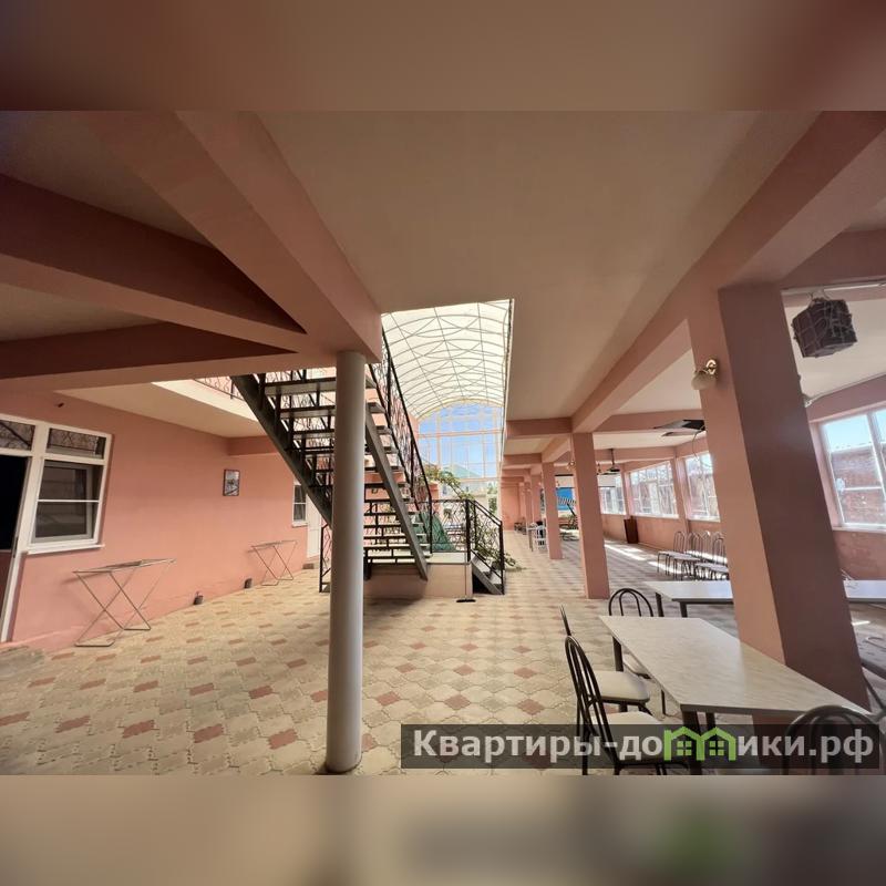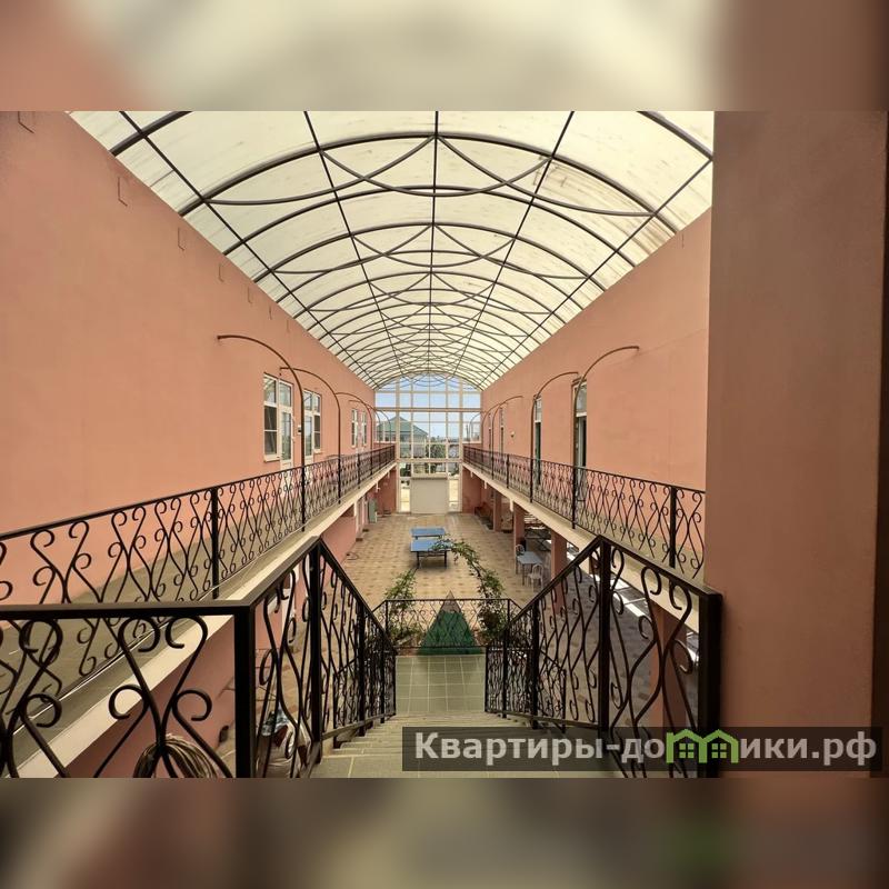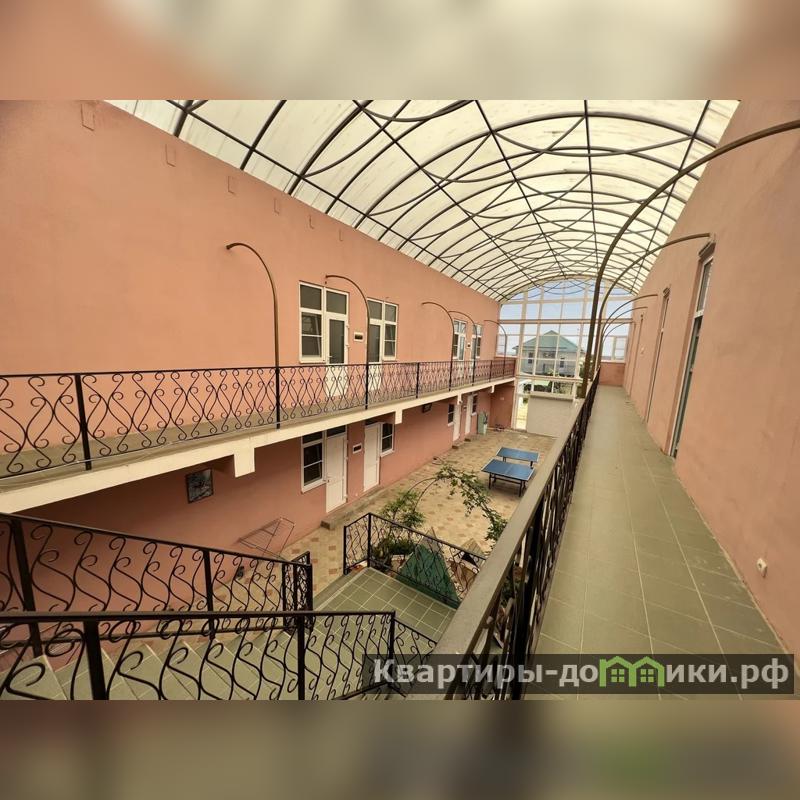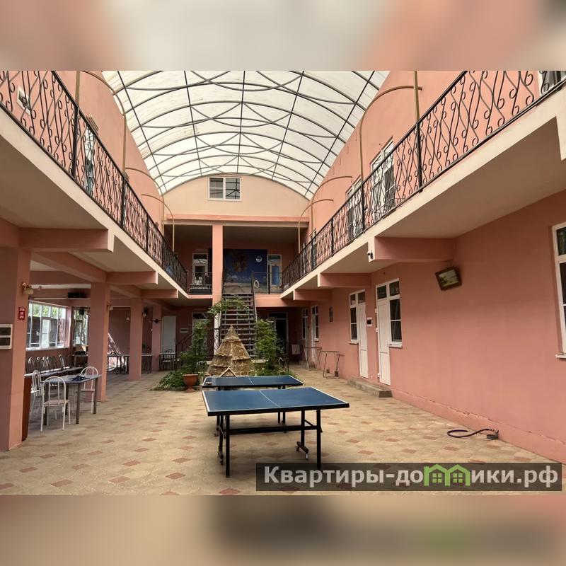 Первый дом - 3-х этажная гостиница на 26 номеров площадью 1044 кв.м. В каждом номере санузел, сплит система, холодильник, телевизор. Войдя в гостиницу, вы увидите большой холл под куполом. Здесь располагается зона для отдыха, кинотеатр с большим экраном для просмотра фильмов, песочница, качели. Есть большая кухня, бойлер 350 л, газовая колонка, 3 холодильника, 2 морозильные камеры, стиральная машина, 3 газовые плиты. Под гостиницей большой подвал. Вся мебель и техника остается новым хозяевам.