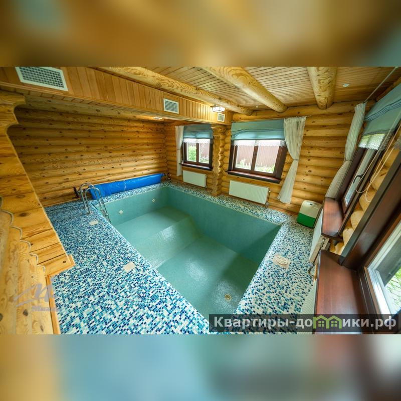 Центр притяжения дома: настоящий дровяной камин, отделанный натуральным камнем. Его тепло не только физическое — оно обволакивает, создаёт настроение, объединяет.Светлая кухня, объединённая с гостиной: удобно, практично, и главное — семейно. Здесь хочется собираться вечерами, делиться новостями и готовить что-то вкусное.Из гостиной можно выйти на зону бассейна и бани — ещё одна особенность этого дома, которая делает его уникальным.В доме — закрытый бассейн, позволяющий отдыхать в любое время года. Это редкость для загородных домов и настоящее преимущество. Второй этаж