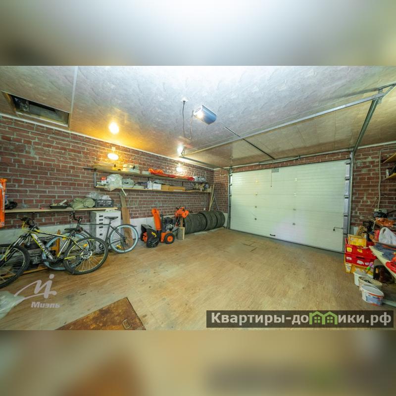 Удобный гараж с автоматическими воротами, местом под велосипеды, снегоуборочную технику, хозинвентарь.Всё продумано — от розеток до стеллажей и освещения. Участок