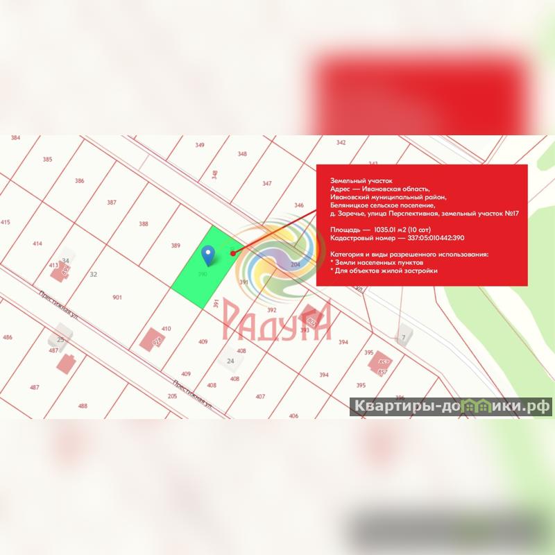 Адрес — Ивановская область, Ивановский муниципальный район, Беляницкое сельское поселение, д. Заречье, улица Перспективная, земельный участок №17 — участок ,