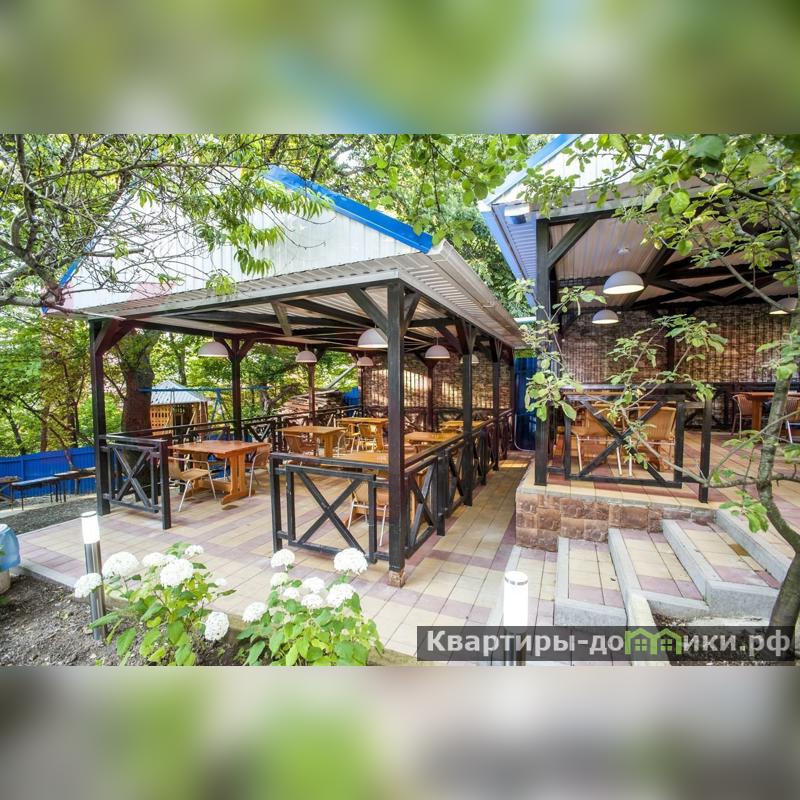 Бассейн 10 на 5 метров глубиной 160 с автономный станцией очистки и нагрева воды. Зона для загара на 10 шезлонгов , детская площадка, беседки на 10 столов. Все организовано под кафе. Мангальная зона. Территория с плодовыми деревьями и кустарниками. Своя парковка на 17 машин.<br />