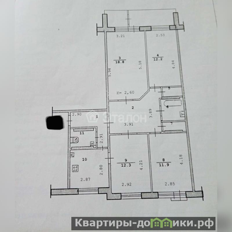 Квартира разносторонняя, не угловая, три изолированные спальни 18,8+12,2+11,9, столовая-гостинная 12,3кв.м, кухня 8кв.м., большая застекленная лоджия 5,5кв.м.