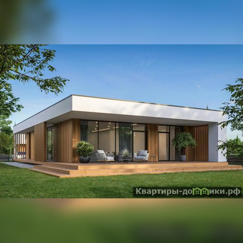- Материалы: фасады отделаны эластичной штукатуркой и натуральным деревом. Стены из газосиликатного блока с утеплением минеральной плитой 100 мм, надежные железобетонные перекрытия, плоская гибкая кровля, двойные стеклопакеты.