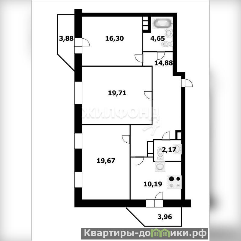 3 комн. квартира по ул. Гурьевская. Общей площадью: 86.90 кв.м.