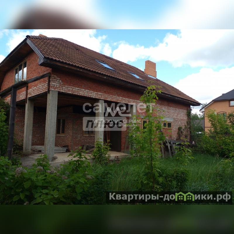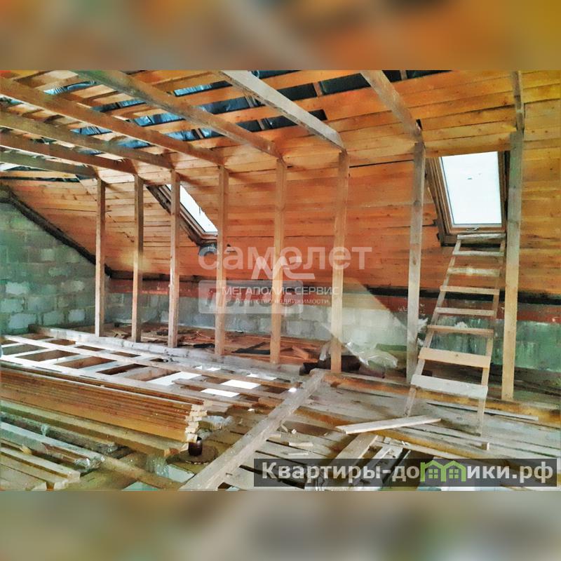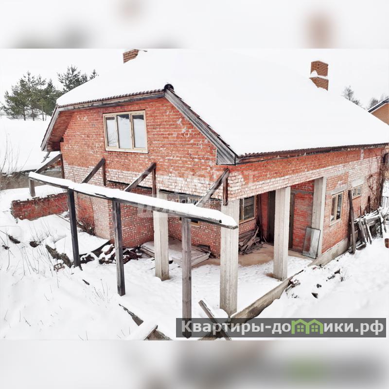 Фундамент-монолитная плита. Стены выполнены из пеноблока, утеплителя и облицовочного кирпича. Внутри дом оштукатурен под чистовую отделку. Не доделан потолок второго этажа.