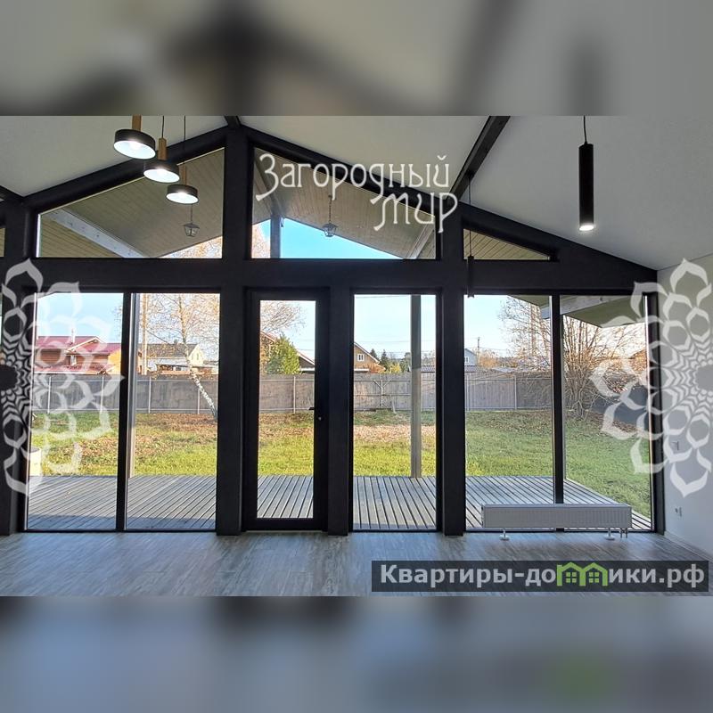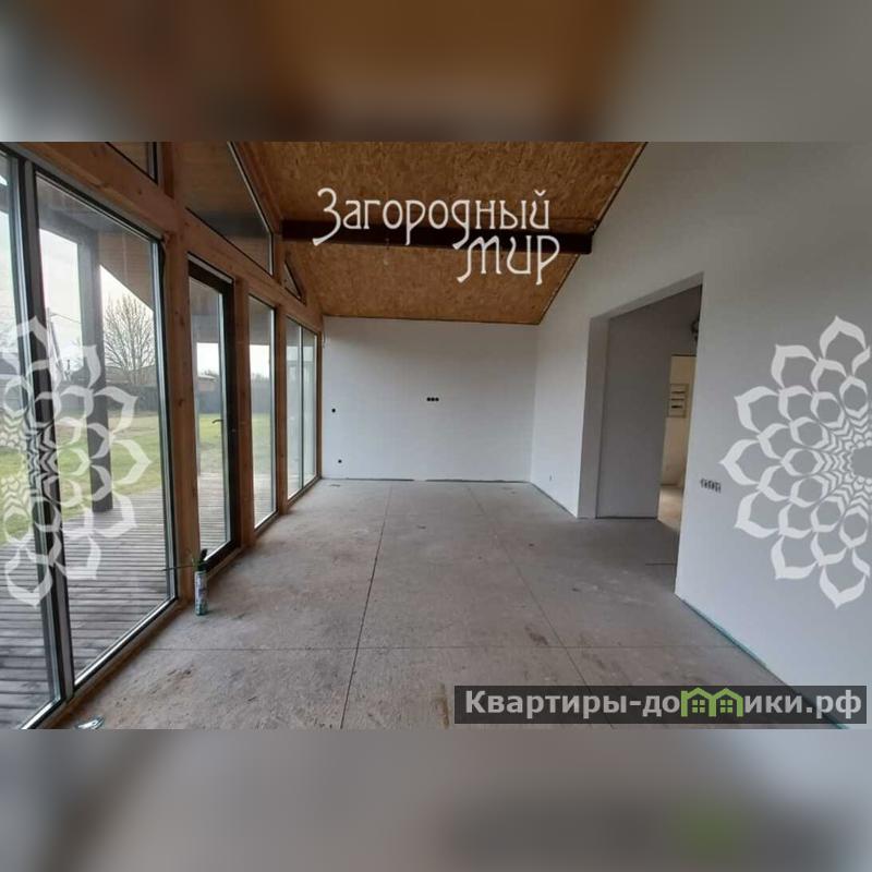 В доме просторная кухня-гостиная с панорамным остеклением с выходом на большую террасу, две спальни, с/у, бойлерная, холл, высокие потолки от 2,65 до 4,2 м, выполнена скрытая электрика, противопожарный шкаф, все провода в специальной гофре, без распаячных коробок, как положено в деревянном доме, все соединения исключительно в розетках и выключателях.