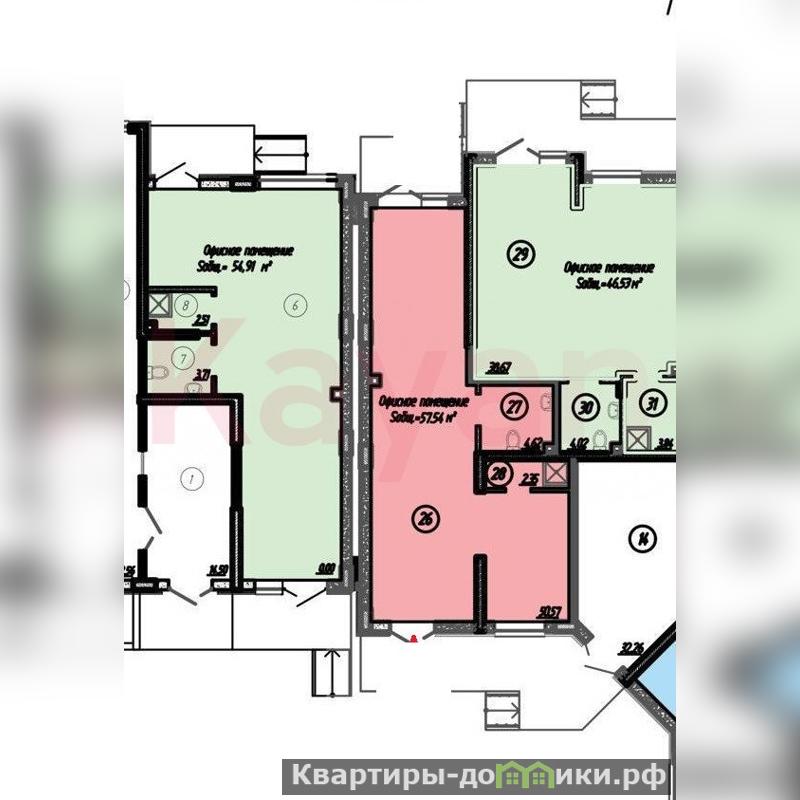 Площадь помещения 55,4 кв.м<br />