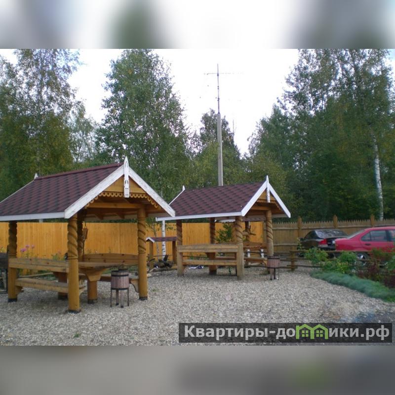 На участке в 12 соток оборудованы также места для отдыха: две беседки, по 5 кв.м, площадка для барбекю 50 кв.м, площадка с качелями и песочницей 110 кв.м, пруд с ручьём. Автостоянка на 10 машин. Территория огорожена и оснащена системой видеонаблюдения.