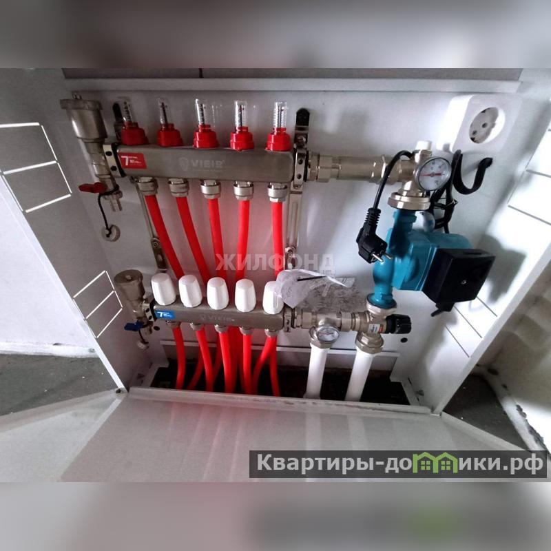 Отопление: Двухконтурный газовый котел с радиаторами в каждой комнате и теплыми полами.